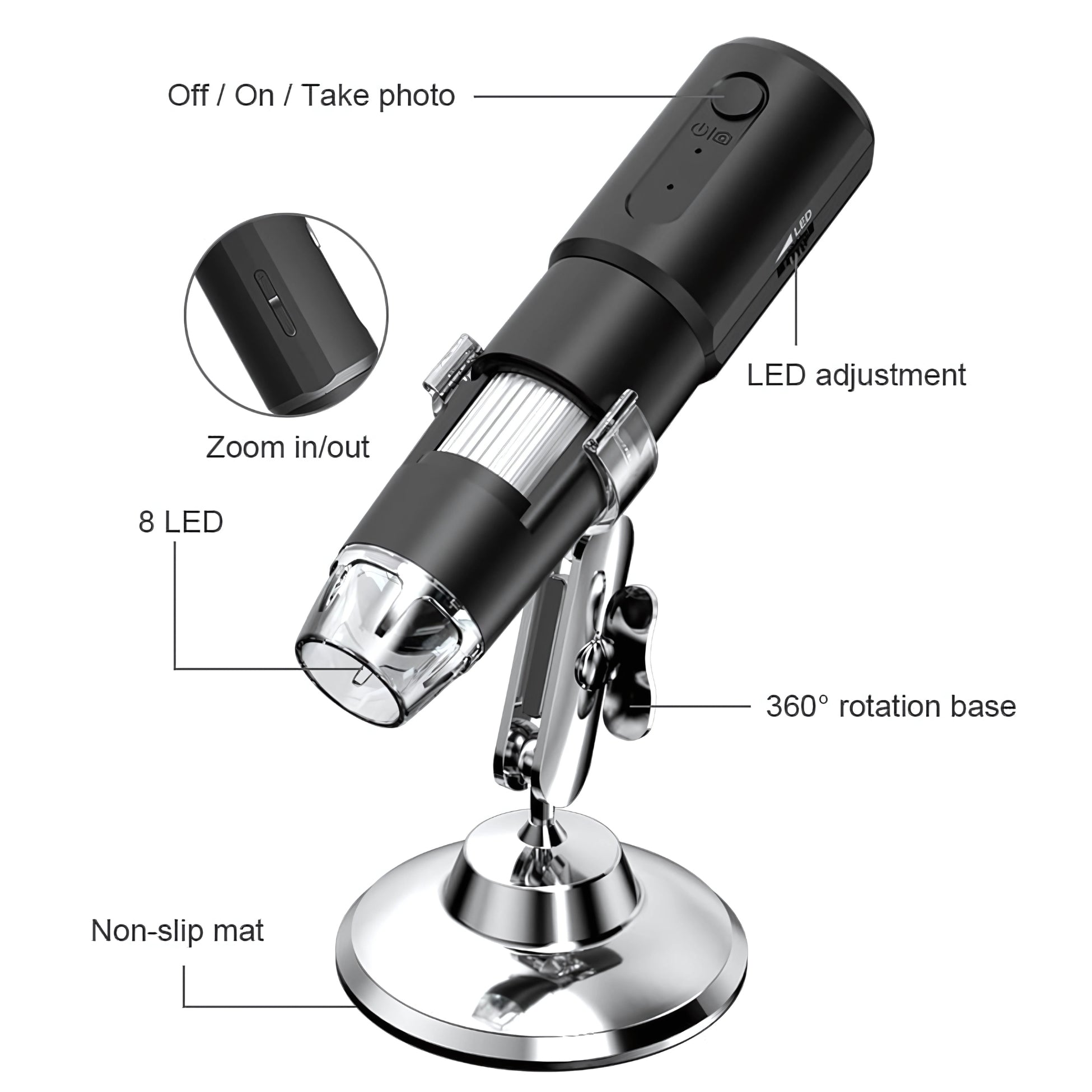- Lumières LED réglables pour des images plus lumineuses.
