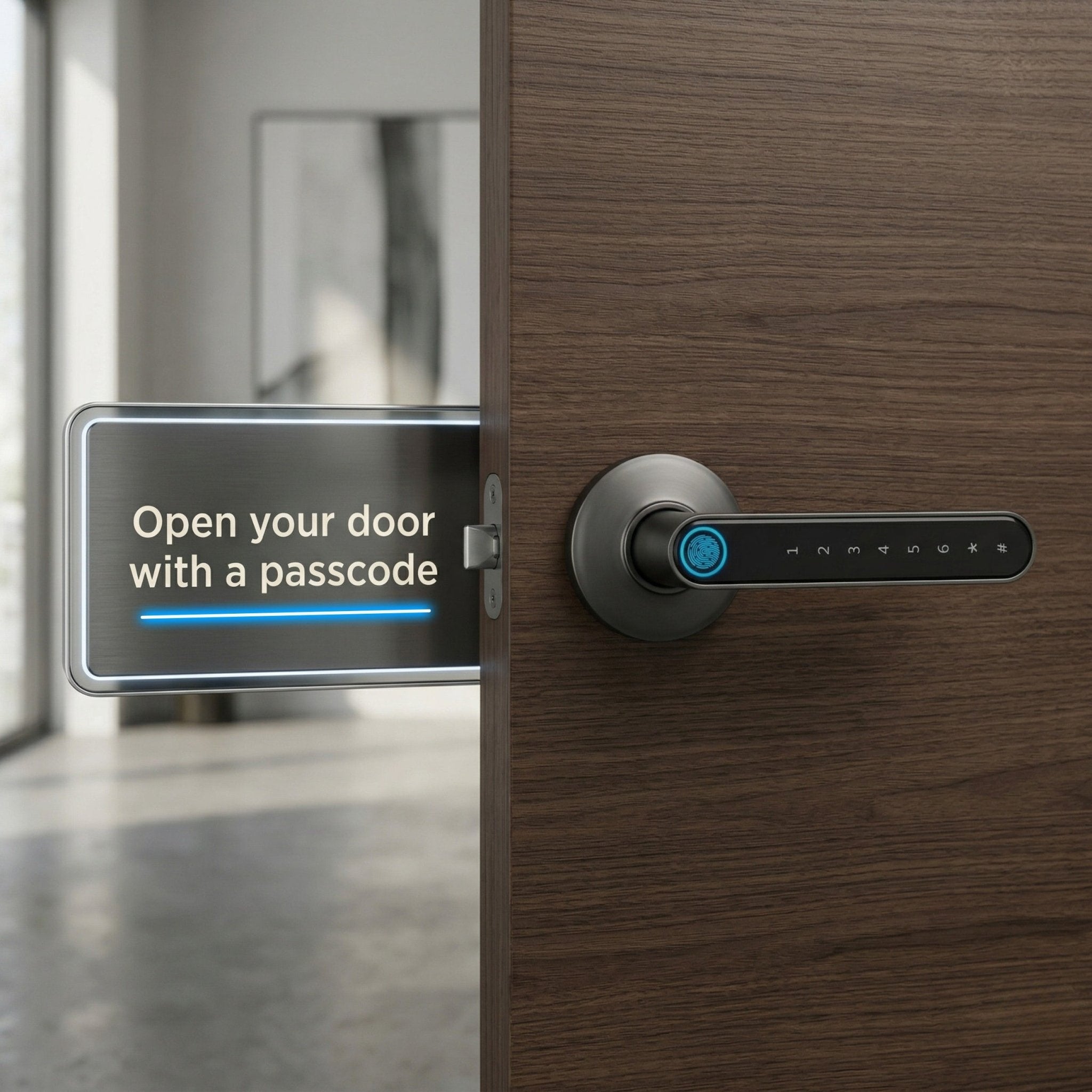 Open your door in seconds with a passcode you can type on the door handle digital type pad directly. Manage multiple passcodes right from your mobile app to give access temporarily or for an extended period.